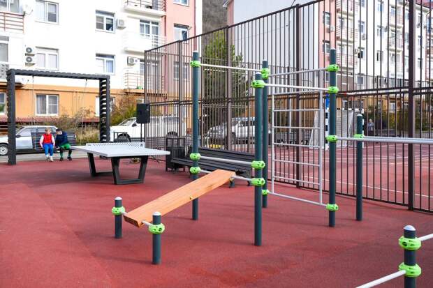 — Спортивная площадка с уличными тренажёрами, теннисными столами, воркаут-комплексом и многофункциональной зоной